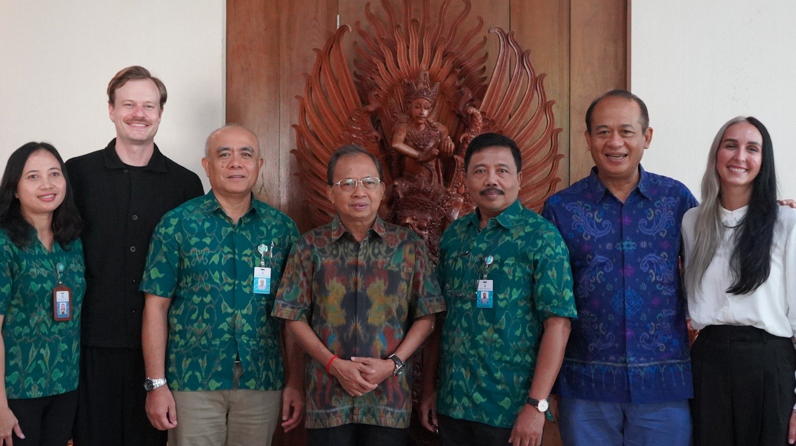 Dagny Magdalene Jaeger Markussen (paling kanan), bersama Gubernur Wayan Koster dan tim RS Kasih Ibu, di Jayasabha, Denpasar, Minggu. (Foto: Biro Humas Setda Provinsi Bali)
